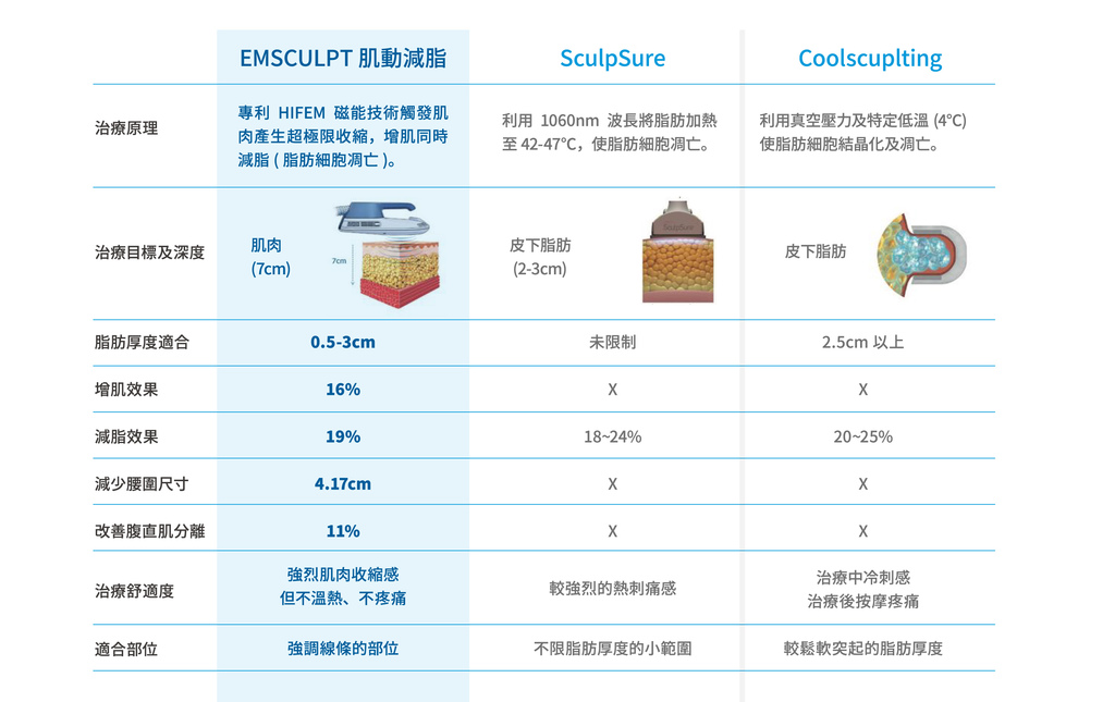 Emsculpt 肌動減脂 vs 其他體雕競品